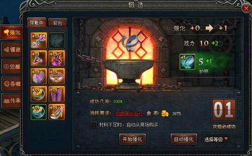 ★强化具有一定的成功率,强化等级越高的装备下一级的强化成功率越低,可以通过使用祝福石来提升装备的强化成功率;