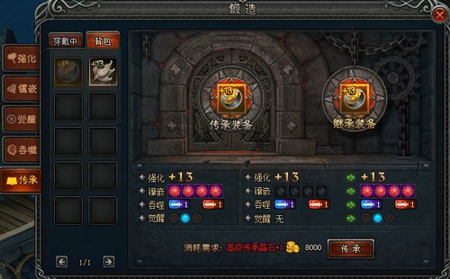★只有继承属性的装备的等级与品质高于传承装备时才可进行传承操作;