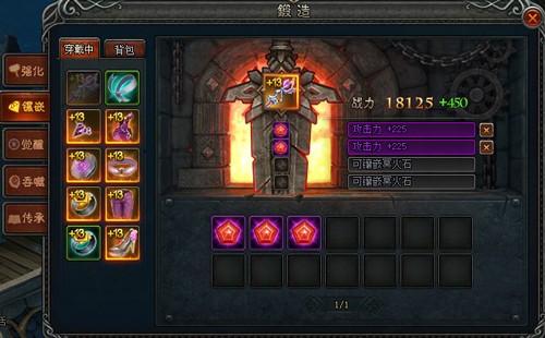 ★点击锻造面板中的不同页签,魔法师可以将穿戴中或者背包内的装备进行强化、镶嵌、觉醒、吞噬或传承;