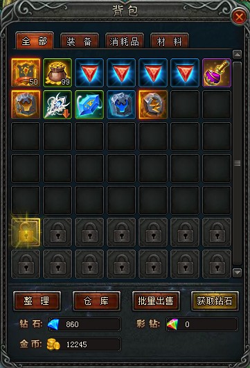 ★每位魔法师的背包与仓库初始分别拥有35与20格格子,通过累计在线时间或使用钻石可以开启更多格子;